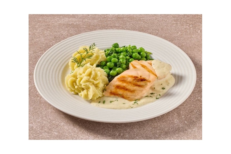 Een lekkere, maar vooral gezonde en voedzame vismaaltijd mag natuurlijk niet ontbreken in ons dieetmaaltijdenassortiment. De vis die in onze maaltijden wordt verwerkt is duurzaam gevangen en heeft het ASC-keurmerk. De zalmfilet in dillesaus wordt geserveerd met spinazie- en doperwtenmix en aardappelpuree.