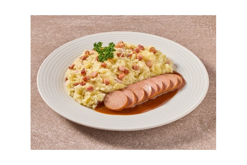 Een echt Hollandse pot: de zuurkoolstamppot met spekjes, gesneden rookworst en jus. Niets is lekkerder dan een Hollandse stamppot tijdens de koude wintermaanden.